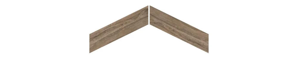 Ceramica Limone Porto Brown 8x40 cm to matowy gres szkliwiony rektyfikowany w eleganckim formacie chevron. Intensywny brąz podkreśla rysunek drewna i nadaje aranżacji głębi, tworząc wyrafinowaną kompozycję inspirowaną klasyczną jodełką.