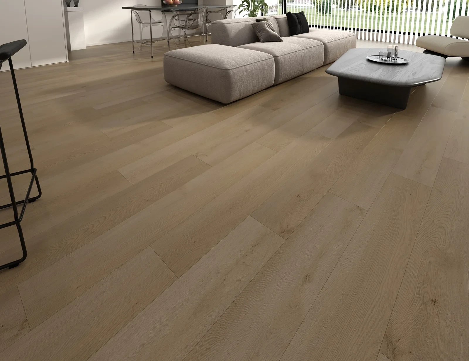 Model Ronda Cappuccino Deska został wykonany w technologii SPC (Stone Plastic Composite), która zapewnia wyjątkową stabilność i odporność na odkształcenia. Rdzeń kompozytowy gwarantuje odporność na wilgoć, dzięki czemu panele idealnie sprawdzają się w pomieszczeniach narażonych na kontakt z wodą. Warstwa ochronna o wysokiej odporności na ścieranie i zarysowania sprawia, że powierzchnia zachowuje swój idealny wygląd przez wiele lat. Zintegrowany podkład akustyczny minimalizuje hałas kroków i zwiększa komfort codziennego użytkowania.