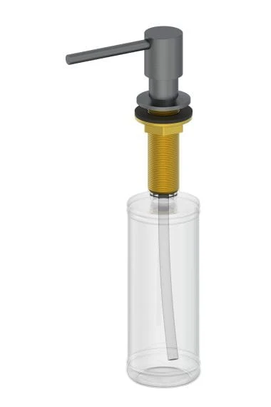 Kuchenny dozownik na płyn Emporia (040175BN) o pojemności 500 ml w wykończeniu gun metal. Model przeznaczony do montażu wpuszczanego, stanowi funkcjonalne uzupełnienie strefy zmywania. Został zaprojektowany tak, aby pod względem kolorystyki i stylistyki tworzyć spójny zestaw z bateriami kuchennymi z linii Piko, Tauro oraz Favo.