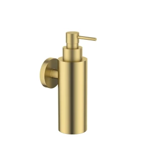 Ścienny dozownik na mydło Emporia (5070GN) wykonany z mosiądzu w satynowym wykończeniu złoty szczotkowany. Akcesorium łazienkowe o wysokości 175 mm i głębokości 115 mm pozwala na higieniczną i wygodną aplikację kosmetyków. Matowa powierzchnia oraz solidny pojemnik o średnicy 63 mm czynią ten produkt niezawodnym i wysoce estetycznym detalem wyposażenia strefy umywalkowej.