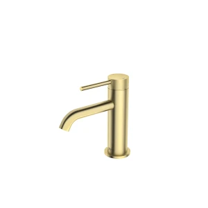 Niska bateria umywalkowa Emporia FLY (03010GN) w eleganckim wykończeniu złoty szczotkowany. Model o wysokości 168 mm i stałej wylewce o zasięgu 130 mm został wykonany z trwałego mosiądzu. Wyposażona w ceramiczną głowicę 35 mm oraz napowietrzający perlator, bateria łączy minimalistyczną formę z precyzyjną regulacją strumienia wody.