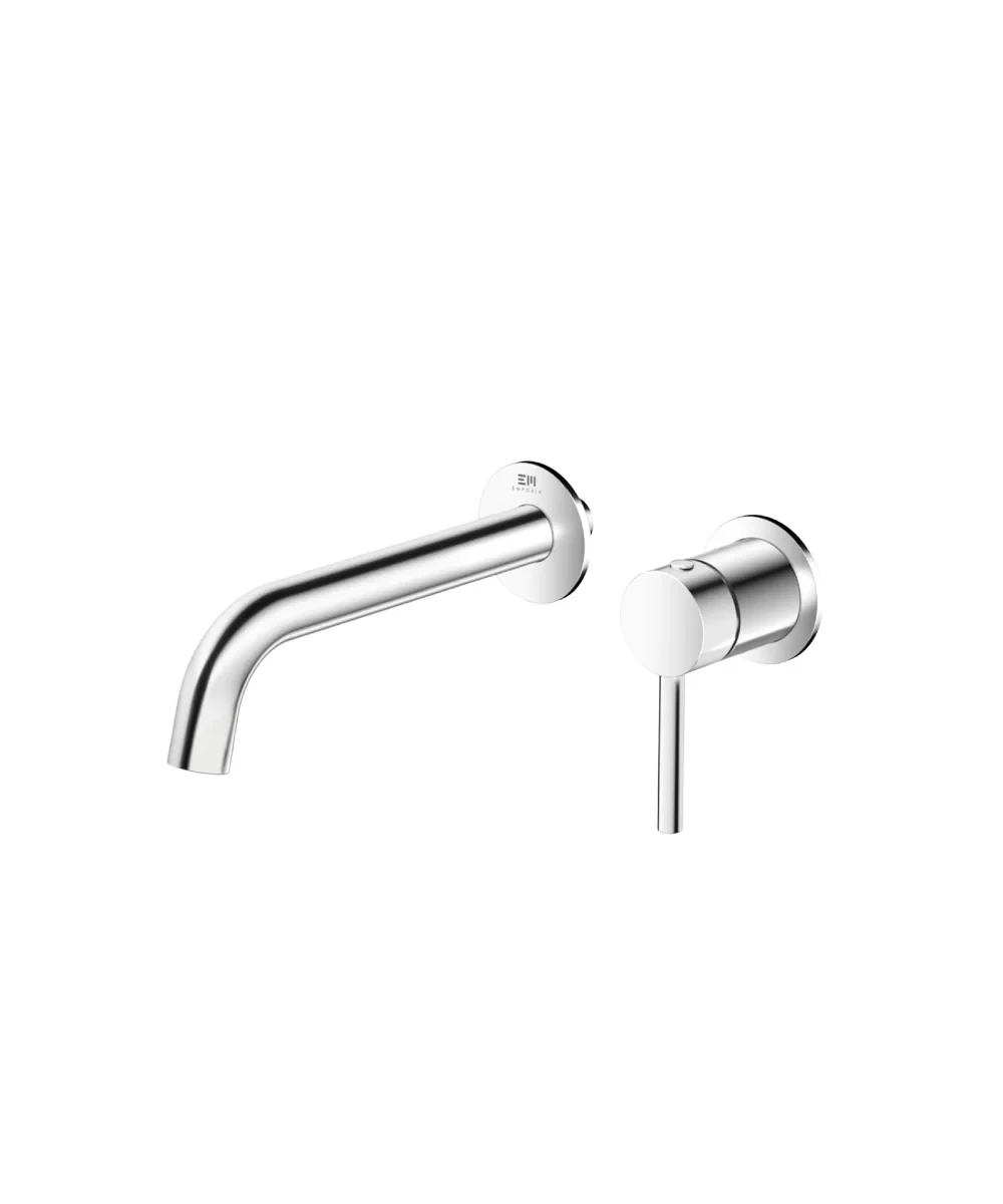 Podtynkowa bateria umywalkowa Emporia FLY w kolorze błyszczącego chromu to nowoczesne rozwiązanie montowane bezpośrednio w ścianie. Wykonana z trwałego mosiądzu, charakteryzuje się stałą wylewką o zasięgu 195 mm oraz płynnie pracującą ceramiczną głowicą. Dużym atutem tego modelu jest dołączony do zestawu element podtynkowy, co pozwala na sprawną instalację bez konieczności dokupowania dodatkowych modułów ukrytych w ścianie.