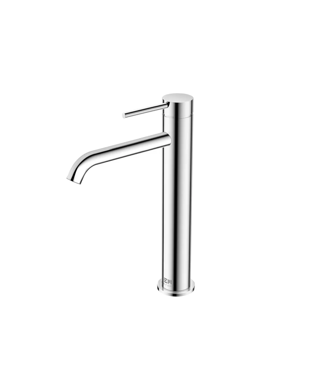 Wysoka bateria umywalkowa Emporia FLY w kolorze błyszczącego chromu to doskonałe rozwiązanie do łazienek z umywalkami nablatowymi. Wykonany z trwałego mosiądzu kran o wysokości 288 mm zapewnia pełną swobodę ruchów, dzięki wylewce umieszczonej na poziomie 210 mm. Zastosowanie ceramicznej głowicy gwarantuje płynną i bezawaryjną pracę, a dołączone do zestawu wężyki o długości 600 mm pozwalają na sprawne podłączenie wody.