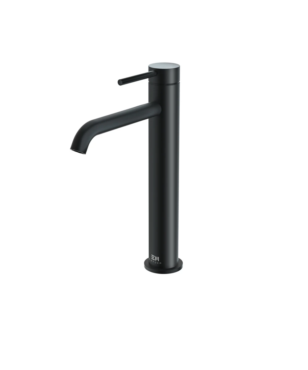Wysoka bateria umywalkowa Emporia FLY w matowej czerni to wyrazisty element wyposażenia, zaprojektowany z myślą o umywalkach nablatowych. Mosiężna konstrukcja o wysokości 288 mm gwarantuje trwałość, a precyzyjna ceramiczna głowica zapewnia płynne sterowanie strumieniem wody. Dzięki wylewce o zasięgu 169 mm, model ten oferuje pełną funkcjonalność i dużą swobodę ruchów w nowoczesnej strefie łazienkowej.
