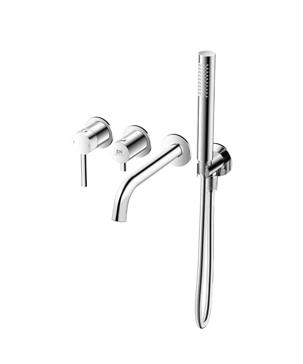 Podtynkowa bateria wannowa z kolekcji Emporia FLY to rozwiązanie stworzone dla użytkowników ceniących wizualną lekkość i nowoczesny design. Dzięki 4-otworowej konstrukcji i montażowi ściennemu, większość mechanizmów pozostaje ukryta, a na zewnątrz widoczne są jedynie funkcjonalne elementy sterujące, wylewka oraz zestaw natryskowy. Błyszcząca, chromowana powierzchnia korpusu nadaje łazience świeży wygląd i optycznie powiększa przestrzeń, tworząc elegancki punkt centralny nad wanną. Solidna obudowa wykonana z mosiądzu gwarantuje odporność na korozję i wieloletnią trwałość produktu.