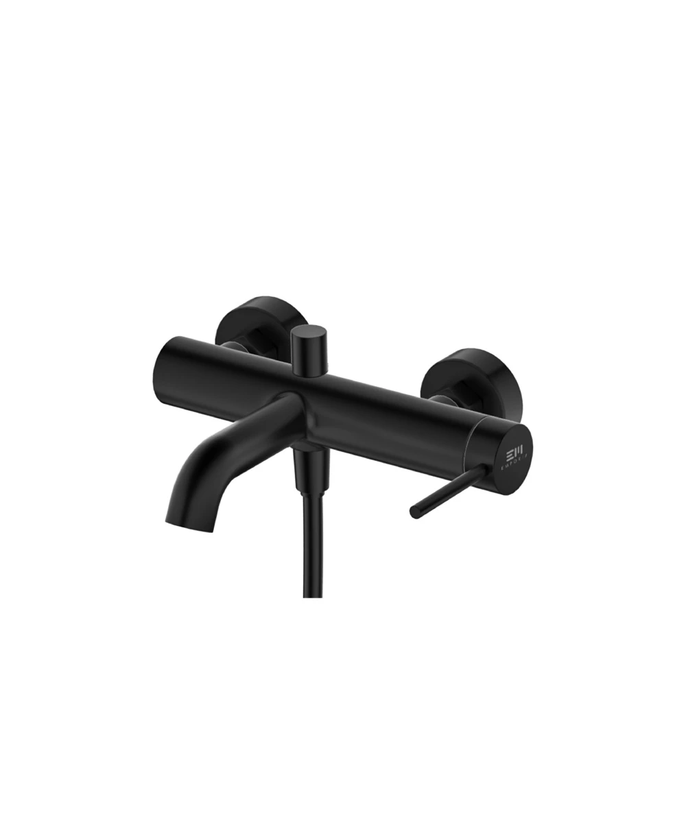 Bateria wannowa ścienna Emporia FLY w czarnym, matowym wykończeniu to nowoczesna propozycja do współczesnych salonów kąpielowych. Mosiężny korpus wyposażono w stałą wylewkę o zasięgu 200 mm oraz niezawodną głowicę ceramiczną o średnicy 35 mm. Model ten cechuje się bardzo niskim zużyciem wody (klasa przepływu Z) i posiada standardowe przyłącze 1/2", co pozwala na swobodne dobranie dowolnego węża oraz słuchawki prysznicowej.