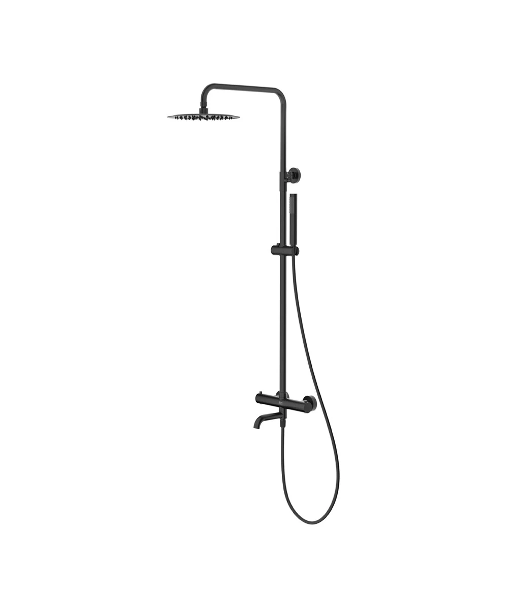 Emporia FLY Kolumna natryskowa termostatyczna, 3-funkcyjna, z zestawem natryskowym, deszczownicą Ø250 mm i wylewką wannową, czarny mat 030130BM