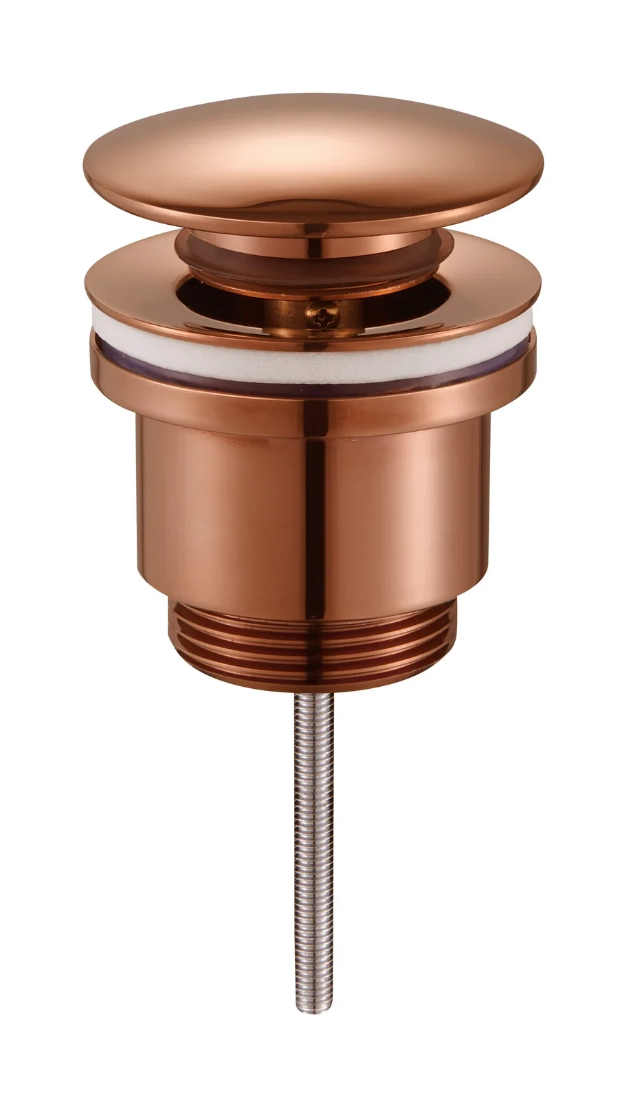 Mosiężny korek umywalkowy Emporia Click-Clack (HF1083-RG) w wykończeniu miedź połysk. Model o uniwersalnym przeznaczeniu posiada średnicę 63,5 mm oraz gwint podłączeniowy 1 1/4 cala. Konstrukcja umożliwia regulację wysokości w zakresie od 10 do 60 mm przy wysokości korpusu dolnego wynoszącej 46 mm.