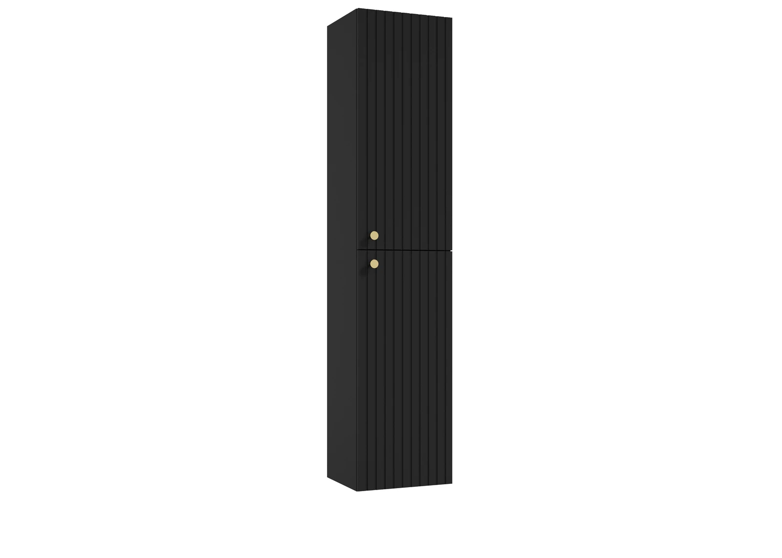 Wysoki słupek wiszący Emporia Rio C37 w głębokim czarnym macie to wyrazisty element dekoracyjny, który wnosi do łazienki nowoczesny sznyt i elegancję. Mebel o wysokości 170 cm przyciąga wzrok efektownym, ryflowanym frontem, skrywającym jasne wnętrze z hartowanymi szklanymi półkami. Dzięki braku narzuconych fabrycznie okuć, szafka pozwala na całkowitą personalizację stylu poprzez samodzielny dobór uchwytów, idealnie pasujących do armatury czy innych detali wnętrza.