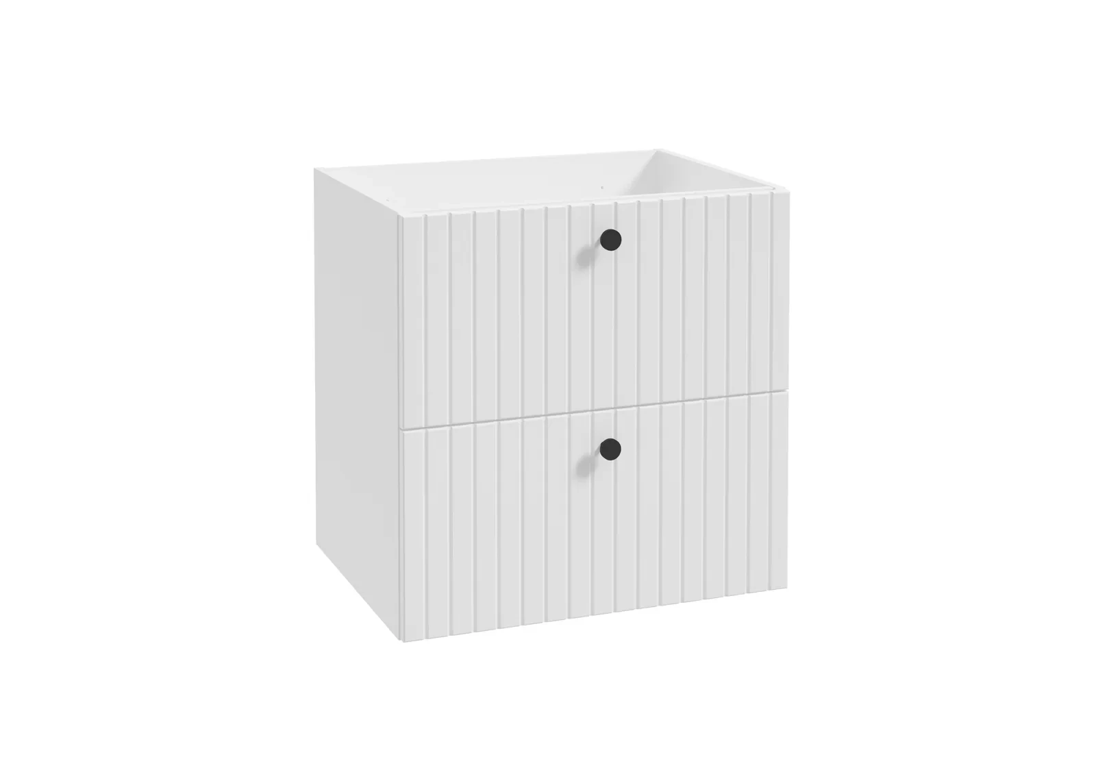 Podwieszana szafka podumywalkowa Emporia Rio D60 w wykończeniu biały mat to funkcjonalna baza dla nowoczesnej łazienki. Wyposażona w dwie szuflady konstrukcja została zoptymalizowana pod montaż syfonu oszczędzającego miejsce, co pozwala w pełni wykorzystać przestrzeń do przechowywania. Ze względu na brak dołączonych uchwytów (do nabycia oddzielnie), mebel oferuje możliwość indywidualnego doboru okuć pod kolor armatury lub innych detali wnętrza.