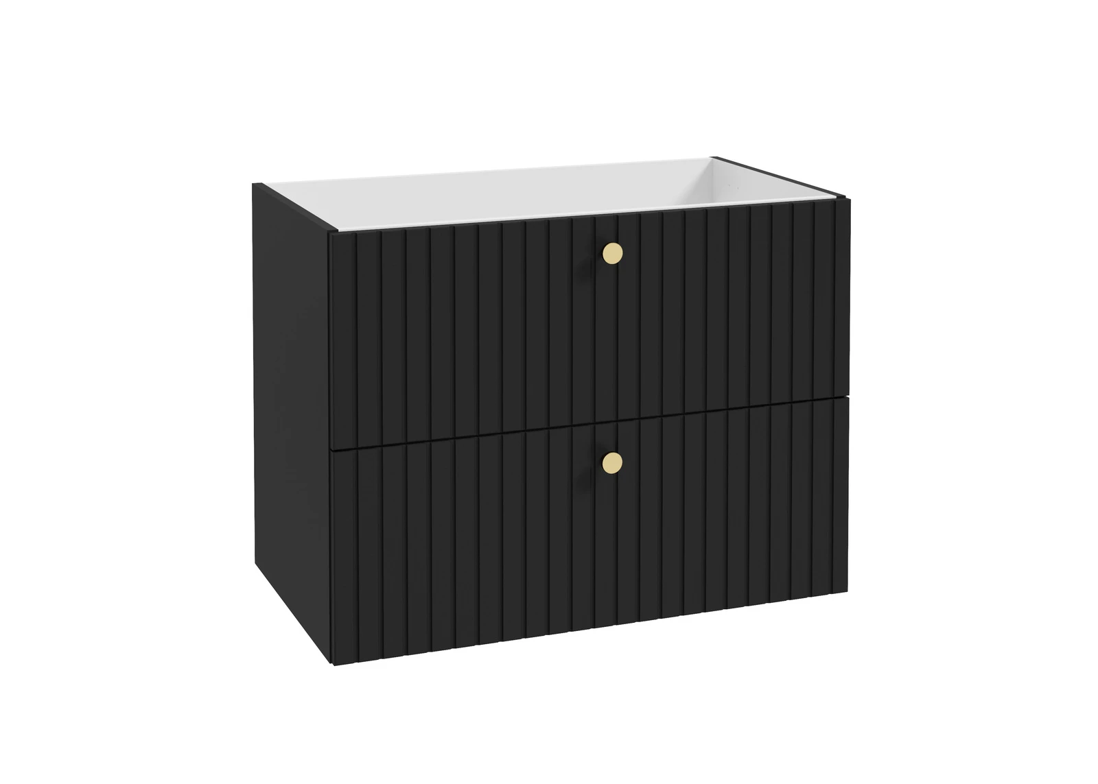Szeroka szafka wisząca Emporia Rio D80 w wykończeniu czarny mat to wyrazisty i pojemny mebel do współczesnych łazienek. Dzięki szerokości wynoszącej blisko 80 cm, model ten oferuje obszerną strefę przechowywania podzieloną na dwie szuflady. Specjalna konstrukcja pod syfon oszczędzający miejsce pozwala na maksymalne wykorzystanie wnętrza mebla. Brak narzuconych w zestawie uchwytów oraz nóżek umożliwia pełną swobodę w kreowaniu finalnego wyglądu zestawu podumywalkowego.