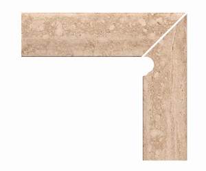 Gres Aragon Marble Travertino Beige – prawy cokół schodowy do stopnicy z kapinosem