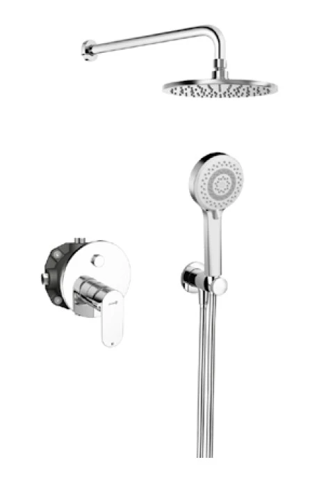 System oferuje użytkownikowi dwa niezależne punkty wypływu wody. Za codzienny komfort odpowiada zintegrowana głowica natrysku (6432505-00), która montowana jest przy użyciu dopasowanego ramienia (6651405-0). Uzupełnieniem funkcjonalności jest zestaw ręczny, w którego skład wchodzi rączka natrysku (6883005-00) oraz dedykowany przewód Suparaflex silver (6107105-00). Odpowiednie doprowadzenie strumienia do słuchawki realizowane jest za pośrednictwem estetycznego, ściennego przyłącza kątowego (6054705-00).