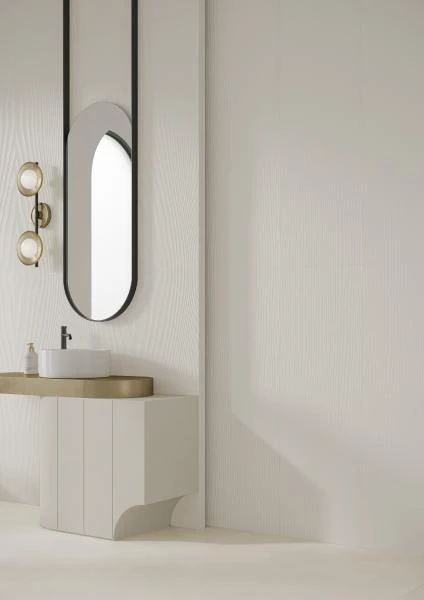 Kluczem do wyjątkowości modelu Pure Cathedral White jest jego trójwymiarowa faktura. Struktura A została zaprojektowana, by ożywiać ściany poprzez subtelną grę cieni, która zmienia się wraz z porą dnia i rodzajem oświetlenia. To nowoczesne podejście do ceramiki dekoracyjnej sprawia, że ściana zyskuje rzeźbiarski charakter bez konieczności stosowania dodatkowych ozdób. Matowa powierzchnia podkreśla szlachetność materiału i sprawia, że jest on niezwykle przyjemny w dotyku, zachowując przy tym najwyższe standardy współczesnego designu.