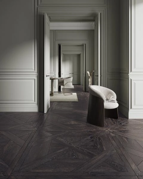 Wybierając model Woodcore Black Mix, stawiasz na architektoniczną czystość. Format kwadratu o boku blisko 120 cm pozwala na zredukowanie liczby fug do absolutnego minimum. Dzięki procesowi rektyfikacji, krawędzie są idealnie proste, co umożliwia montaż na bardzo cienką spoinę. Pozwala to uzyskać efekt jednolitej, "drewnianej" tafli, która optycznie powiększa wnętrze i nadaje mu prestiżowego, apartamentowego charakteru. To idealna baza dla stylu industrialnego, nowoczesnego minimalizmu oraz wnętrz typu dark academy.