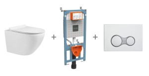 BEVISA TAVI ROUND 49 miska WC bezrantowa z deską Slim soft close 490x360x350 mm + STELAŻ VITRA podtynkowy do miski WC 12 cm + VITRA SIRIUS przycisk do stelaża chrom