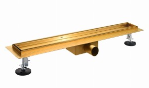Bevisa Mare Drain 90 – odpływ liniowy 900 mm z rusztem odwracalnym, brushed gold do wklejenia płytki