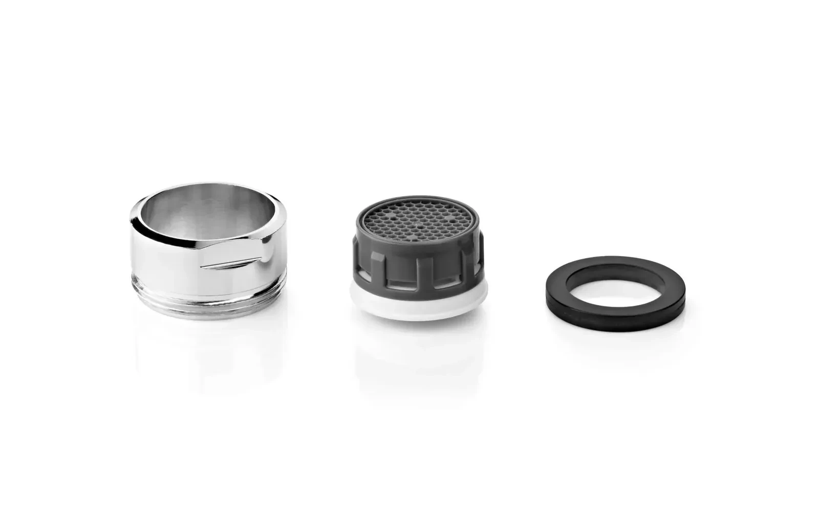 Aerator wykonany jest z tworzywa sztucznego, z elementami mosiądzu. Produkt redukuje przepływ wody, znacznie ograniczając jej zużycie. Wykończony został w błyszczącym chromie.