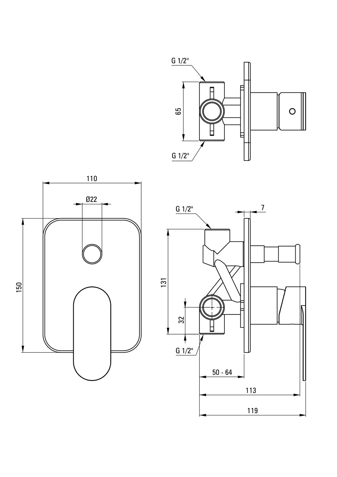 Deante Alpinia Bateria prysznicowa podtynkowa z przełącznikiem natrysku – BGA_044P