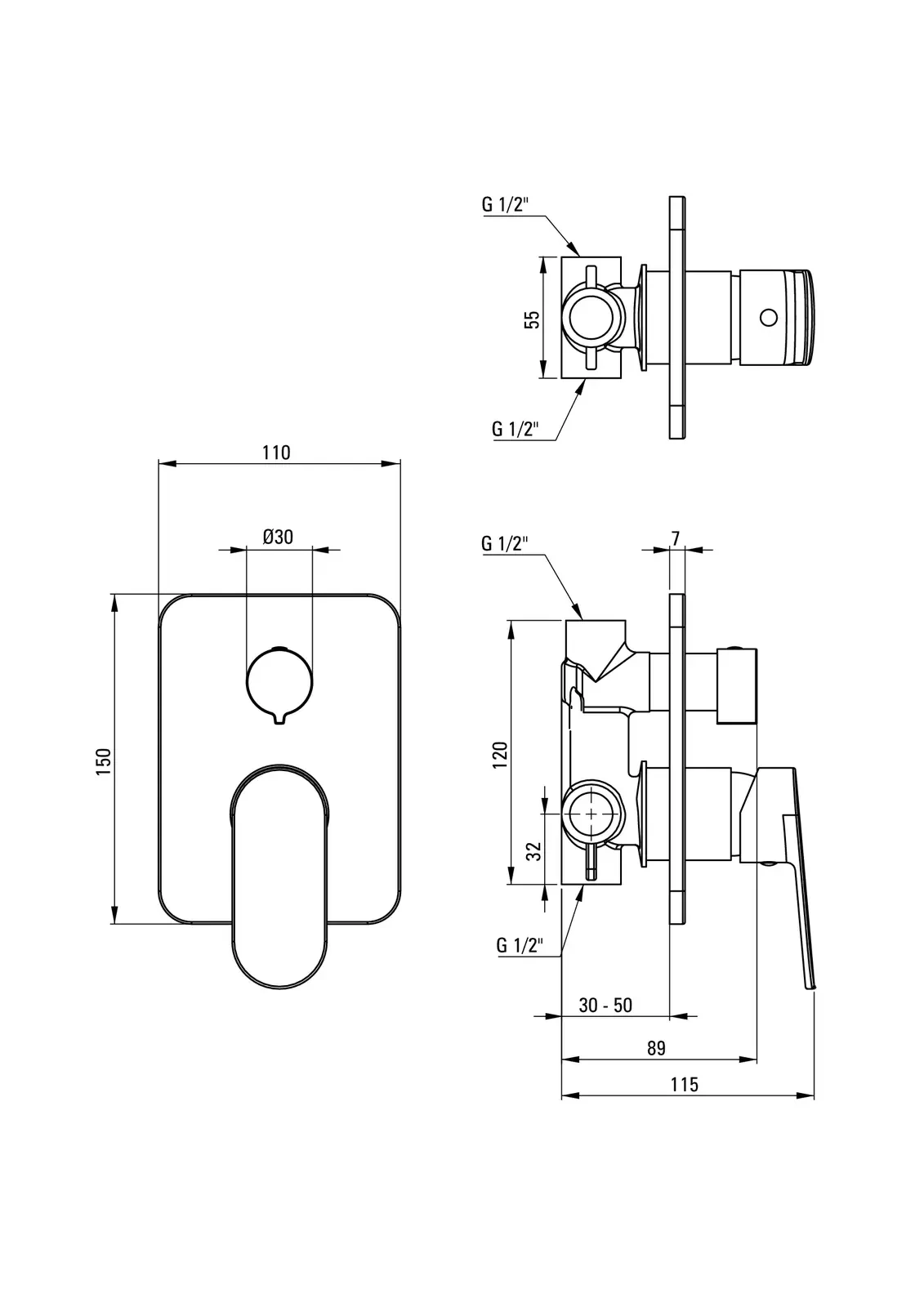 – Sposób instalacji: podtynkowy