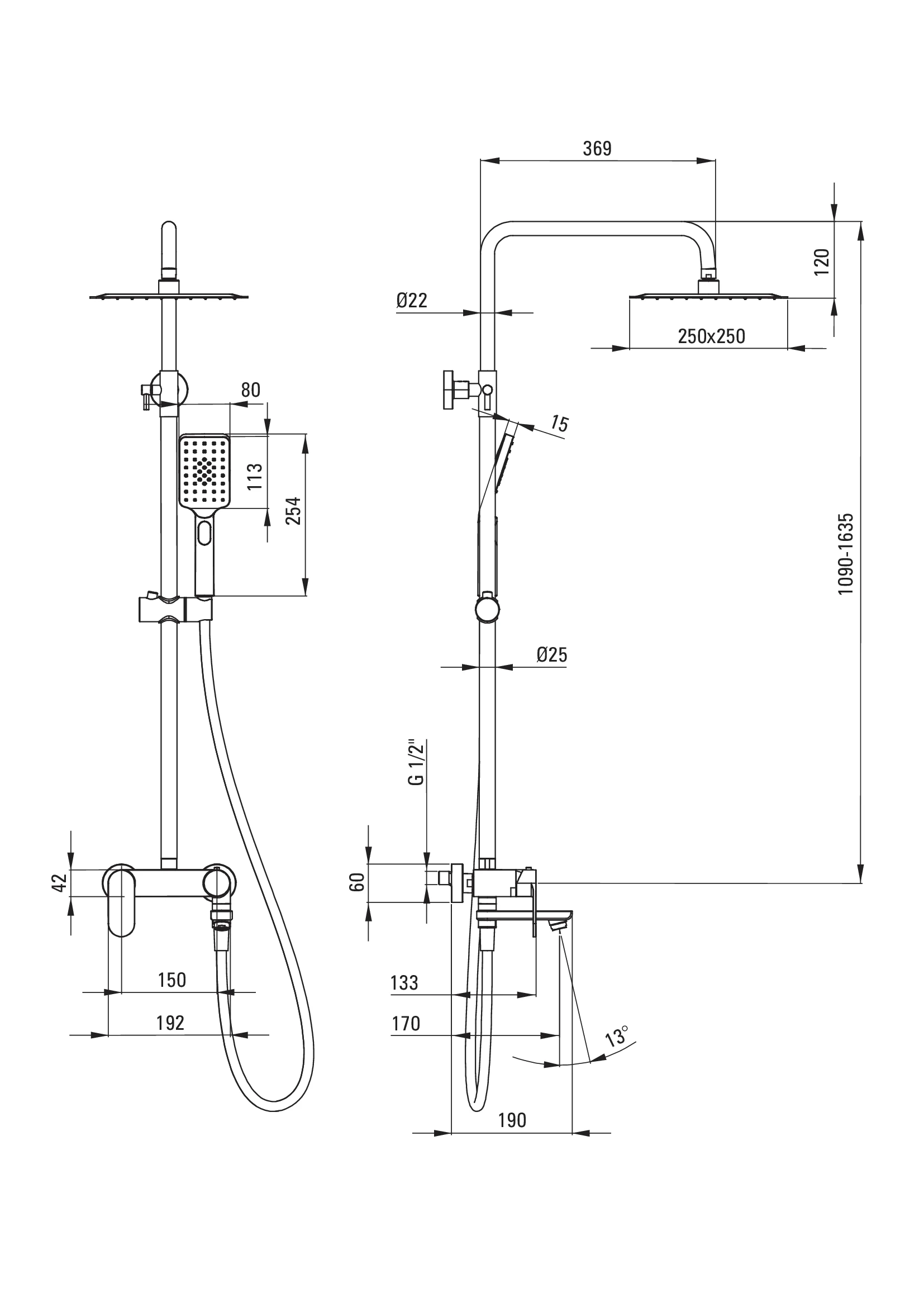 Deante Alpinia Deszczownica z baterią wannową – dane techniczne i specyfikacja