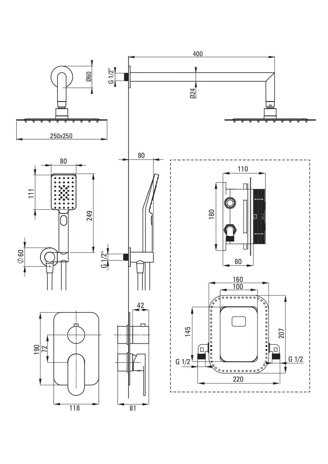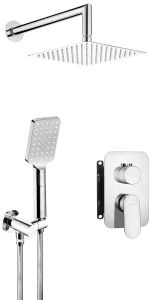 Zestaw prysznicowy składa się z BOXa, deszczowni i słuchawki wraz z uchwytem i wężem. Montaż podtynkowy charakteryzuje się nowoczesnym designem i wyjątkową estetyką. Zarówno słuchawka, jak i deszczownia posiadają system anti-calc, dzięki czemu są łatwe do utrzymania w czystości. Kupując zestaw, masz pewność, że wszystkie elementy będą idealnie do siebie pasowały.
