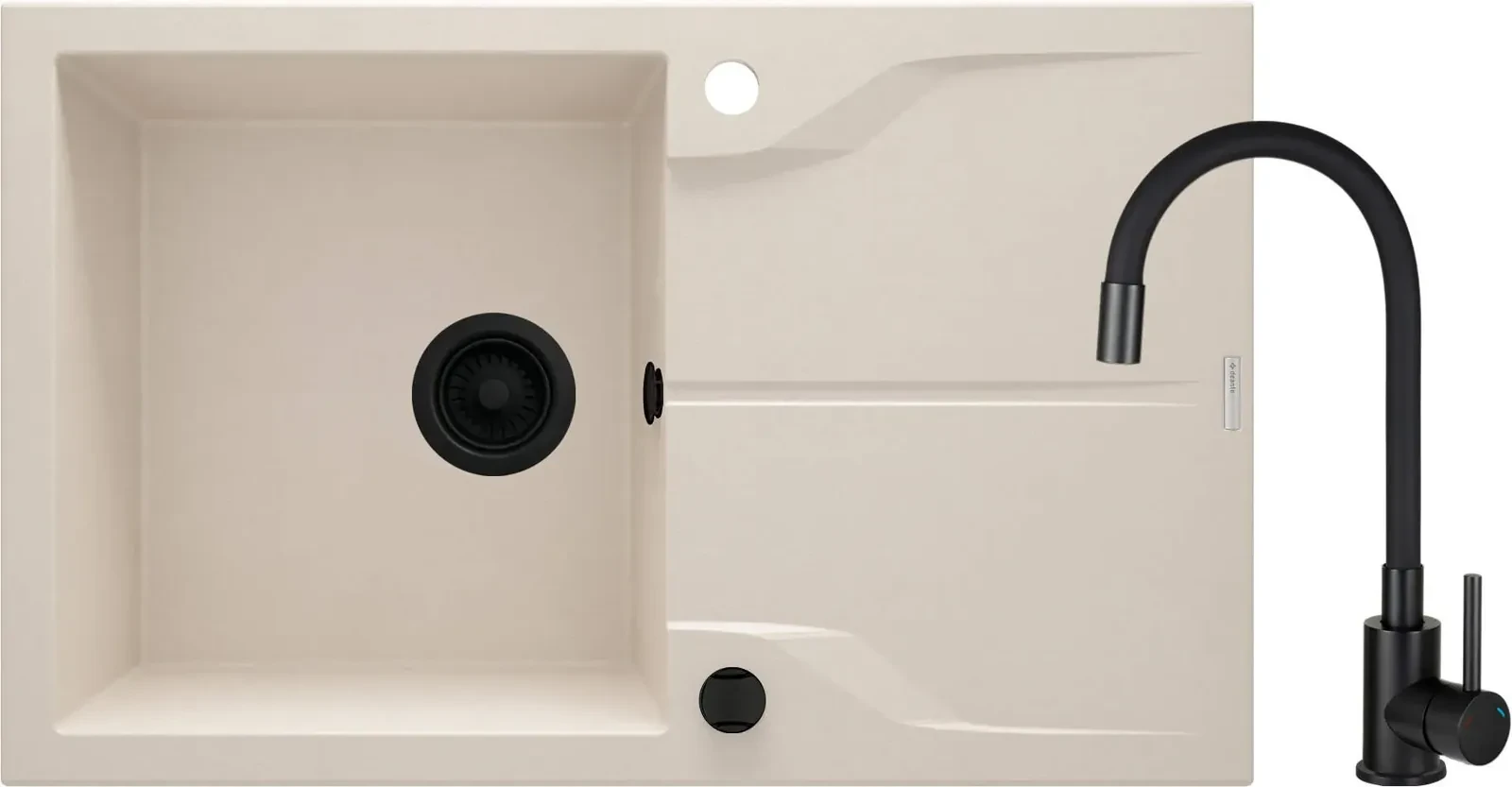 Deante Andante Zlewozmywak granitowy z baterią 1-komorowy z ociekaczem, beż, ZQNN5113