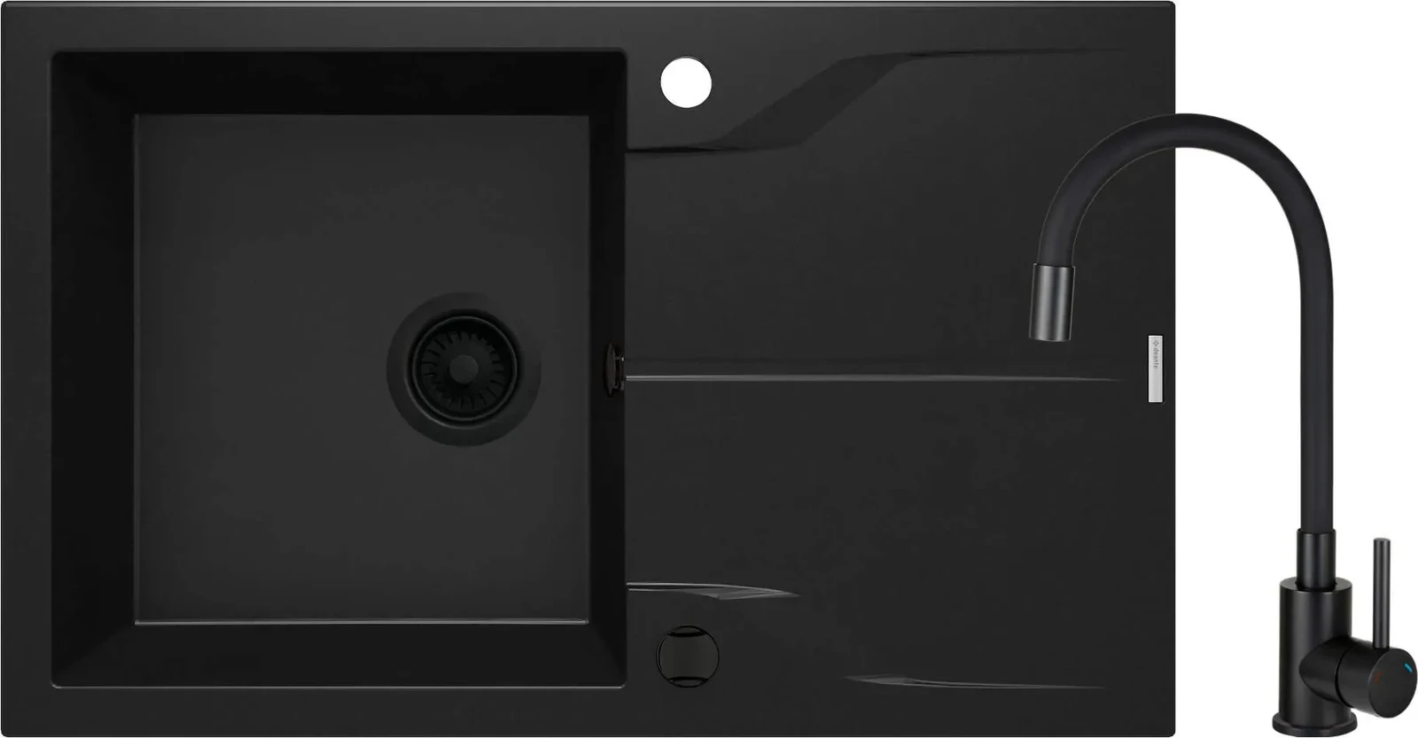 Deante Andante Zlewozmywak granitowy z baterią 1-komorowy z ociekaczem, nero, ZQNNN113