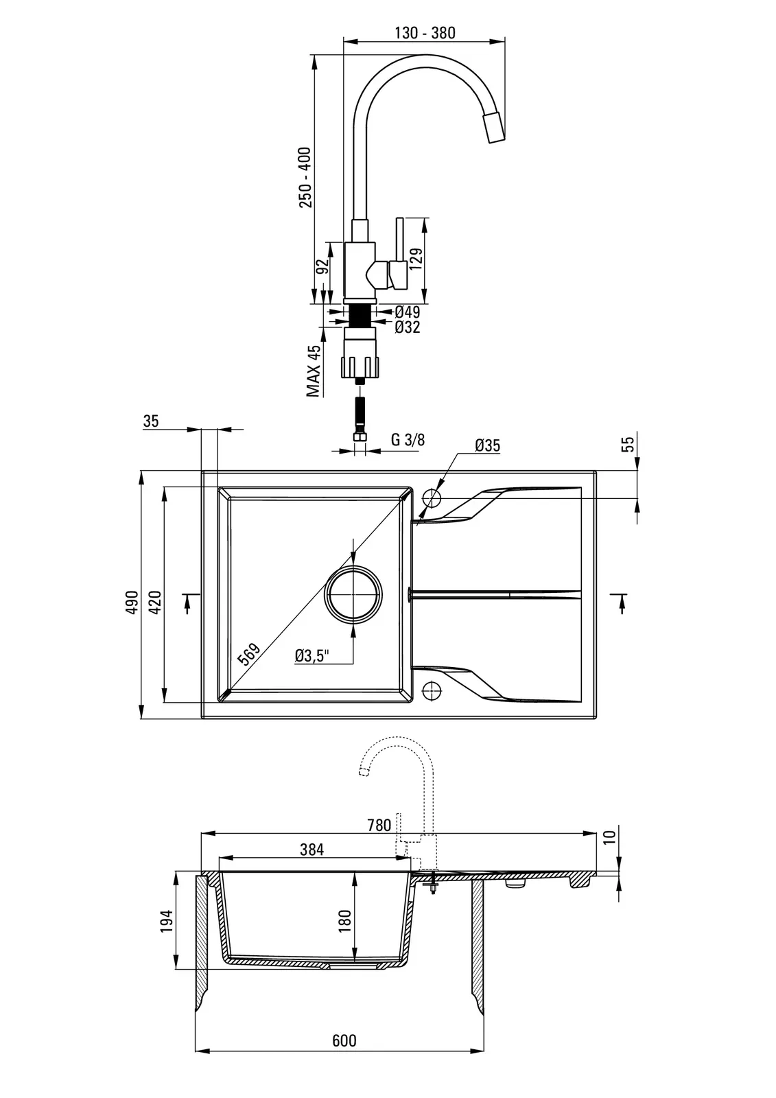 Deante Andante Zlewozmywak granitowy z baterią 1 – dane techniczne i specyfikacja