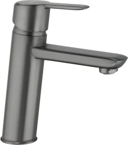 Umywalkowa bateria z kolekcji autorskiej Arnika Titanium w przyjemnym dla oka, intrygującym, a jednocześnie eleganckim i matowym odcieniu grafitowej stali, który odpowiada współczesnym trendom kolorów ziemi, łączy kolorystykę z subtelnymi, obłymi kształtami. Model umywalkowy charakteryzuje się delikatnie pochylonym korpusem. Silikonowy aerator doskonale napowietrza wodę, dzięki czemu strumień jest przyjemny i ma większą objętość, a ponadto umożliwia łatwe usunięcie osadów wapiennych. Bateria wykończona jest w eleganckim, matowym, czarnym kolorze.