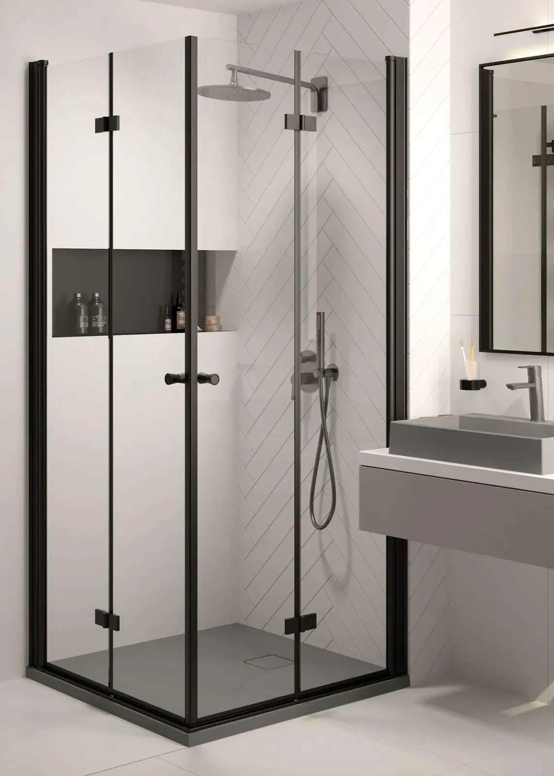 Neutralna forma wpisuje się w różne style aranżacji – od minimalistycznych po klasyczne. Wykończenie titanium podkreśla estetykę i ułatwia dopasowanie.