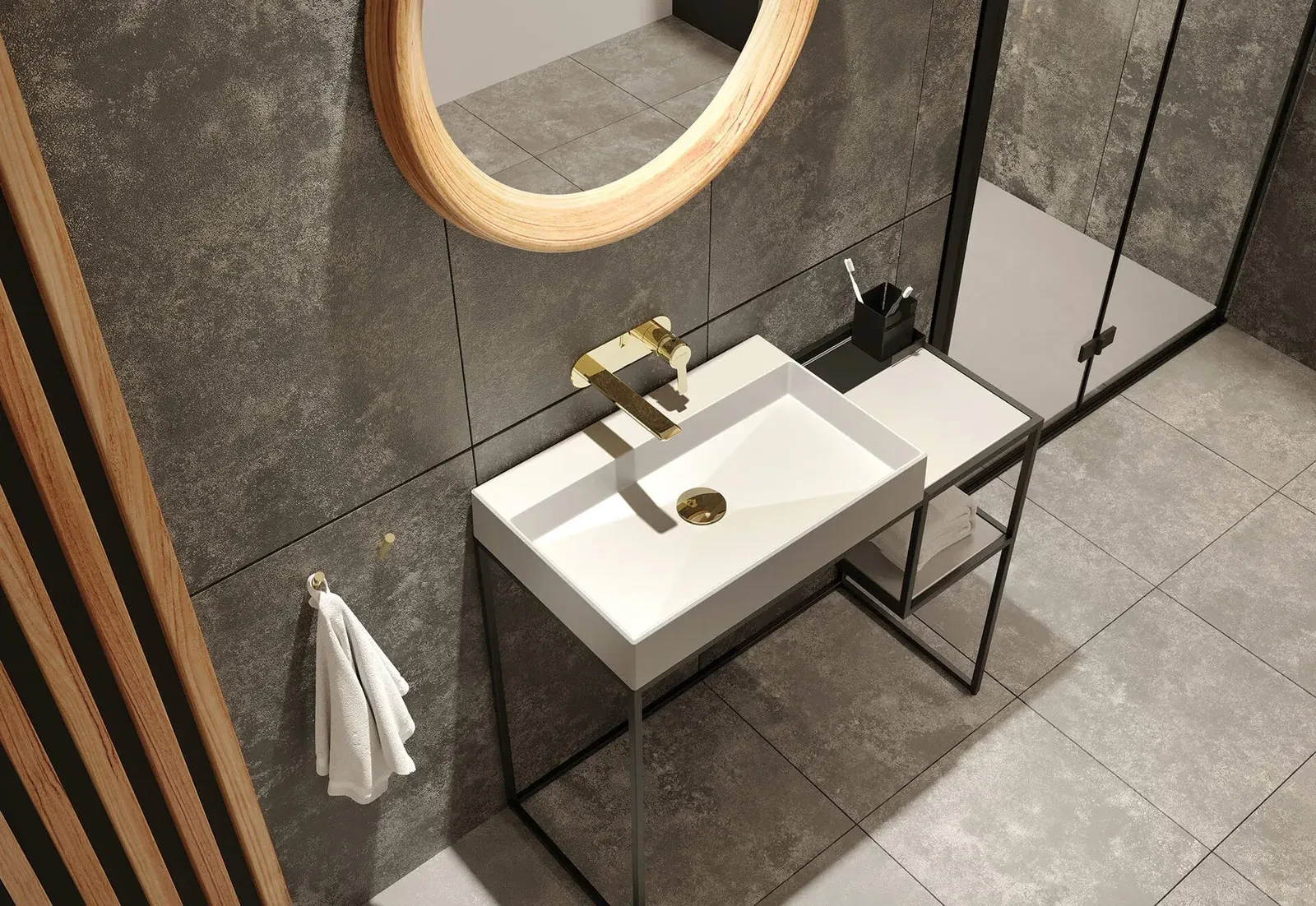 Podtynkowa bateria umywalkowa z autorskiej kolekcji Arnika, to doskonały przykład połączenia harmonijnych, naturalnych kształtów z nowoczesnym designem i funkcjonalnością. Bateria wyposażona została w wygodną dźwignię oraz wylewkę z silikonowym aeratorem napowietrzającym krople i redukującym zużycie wody. Ceramiczna głowica, chroni przed osadzaniem się kamienia oraz zapewnia długotrwałe użytkowanie produktu. Złote wykończenie baterii doskonale komponuje się z białą ceramiką i ociepla aranżacje.