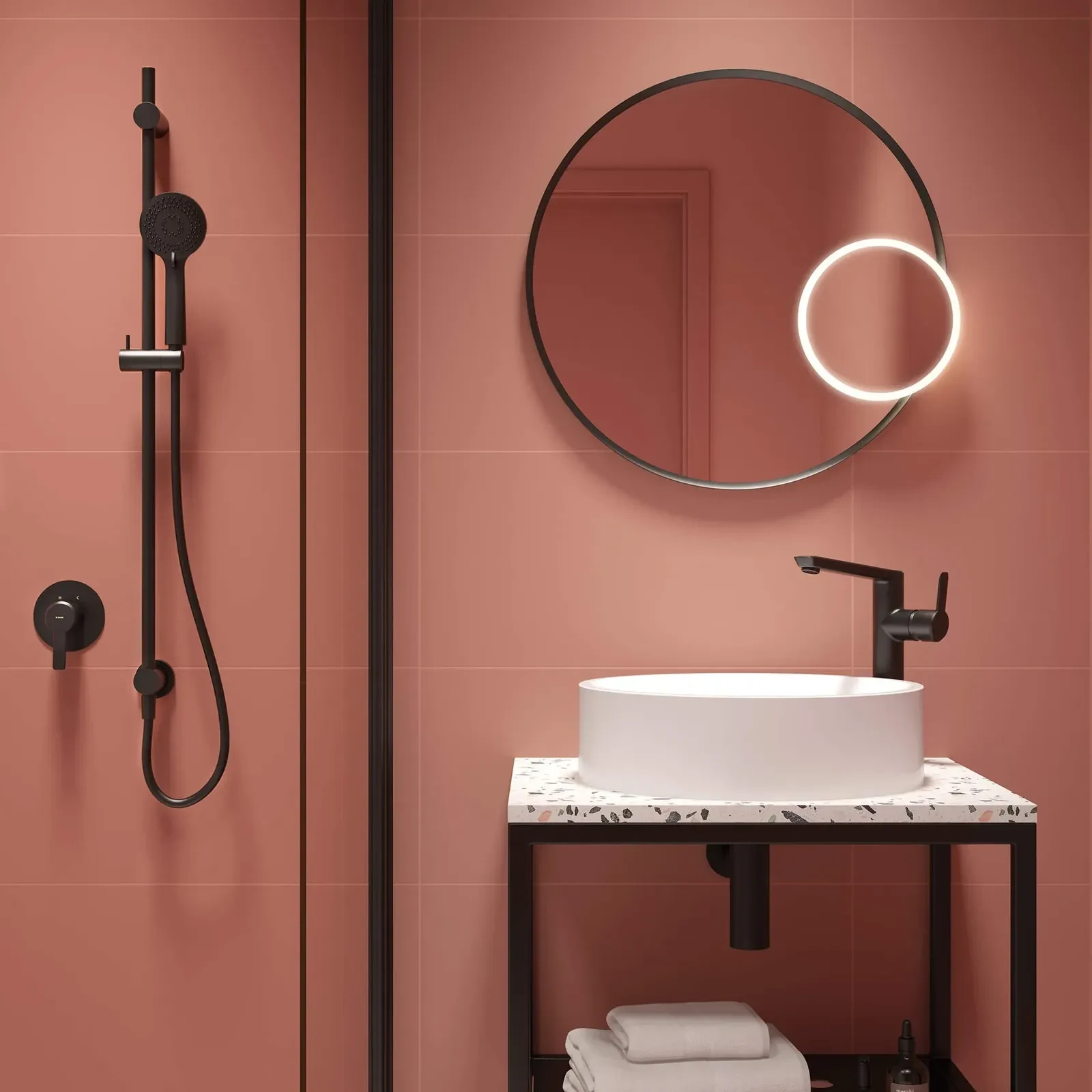 Elegancka, umywalkowa bateria z podwyższonym korpusem z autorskiej kolekcji Arnika Nero, wyróżniającej się czarnym, satynowym wykończeniem, przyjemnymi dla oka harmonijnymi formami i obłymi kształtami, to bateria o wysokości idealnie sprawdzającej się przy umywalkach nablatowych. Bateria wyposażona została w silikonowy aerator z systemem anti-calc ułatwiającym czyszczenie. Aerator napowietrza krople i zwiększa objętość strumienia, zmniejszając tym samym zużycie wody. Cylindryczny przekrój i zastosowanie kątów prostych nadają baterii nowoczesnego charakteru. Ceramiczna głowica i siedmioletnia gwarancja producenta zapewniają długie użytkowanie produktu. Baterie z kolekcji Nero spodobają się szczególnie tym użytkownikom, którzy cenią loftowy, nowoczesny wystrój pomieszczeń i którzy nie boją się mocnych akcentów. Kolekcja Arnika Nero od Deante, doceniona została także przez Redakcję magazynu „Łazienka” i otrzymała jej nagrodę w konkursie Łazienka – Wybór Roku 2019.