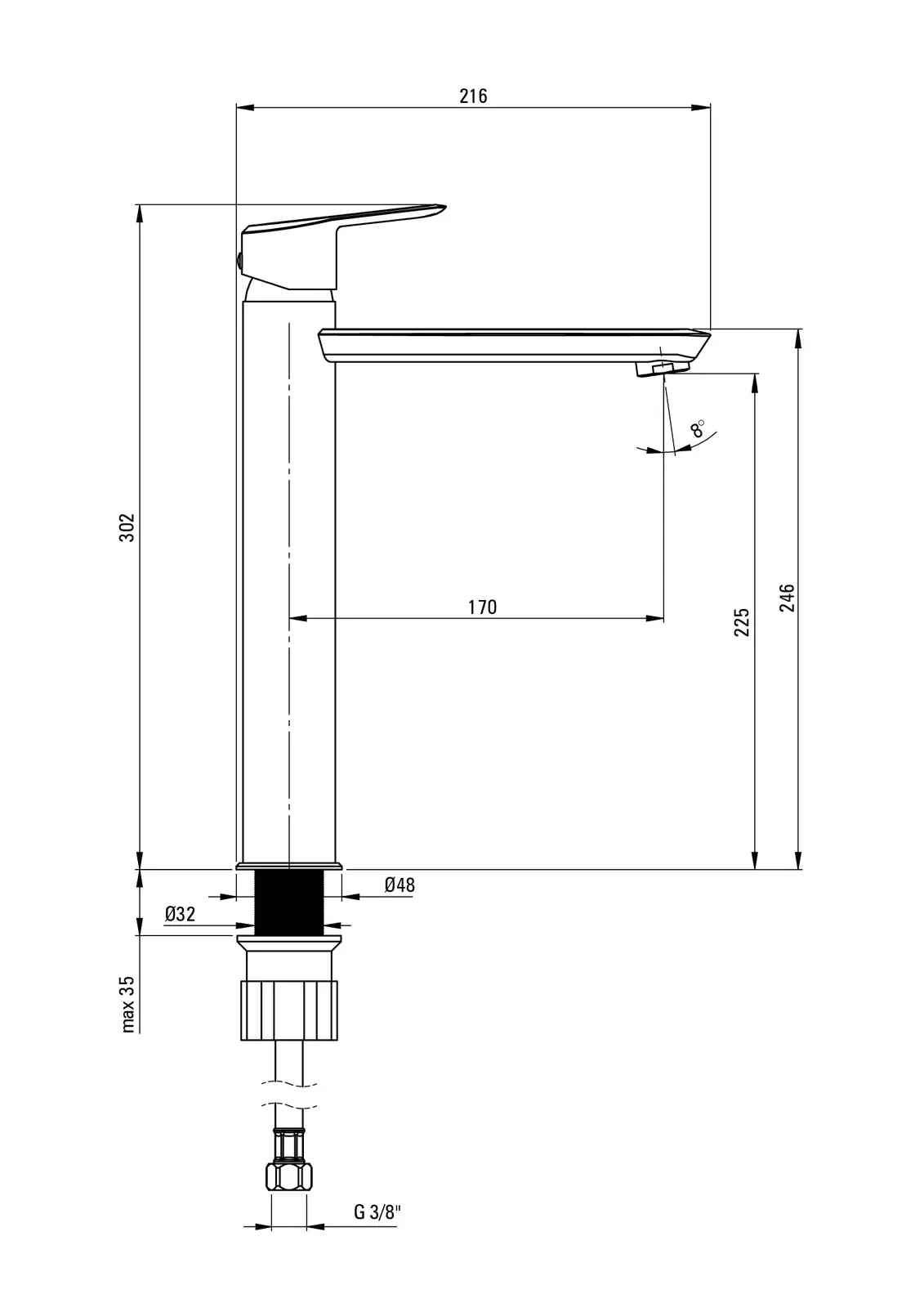 – Długość wylewki: 170