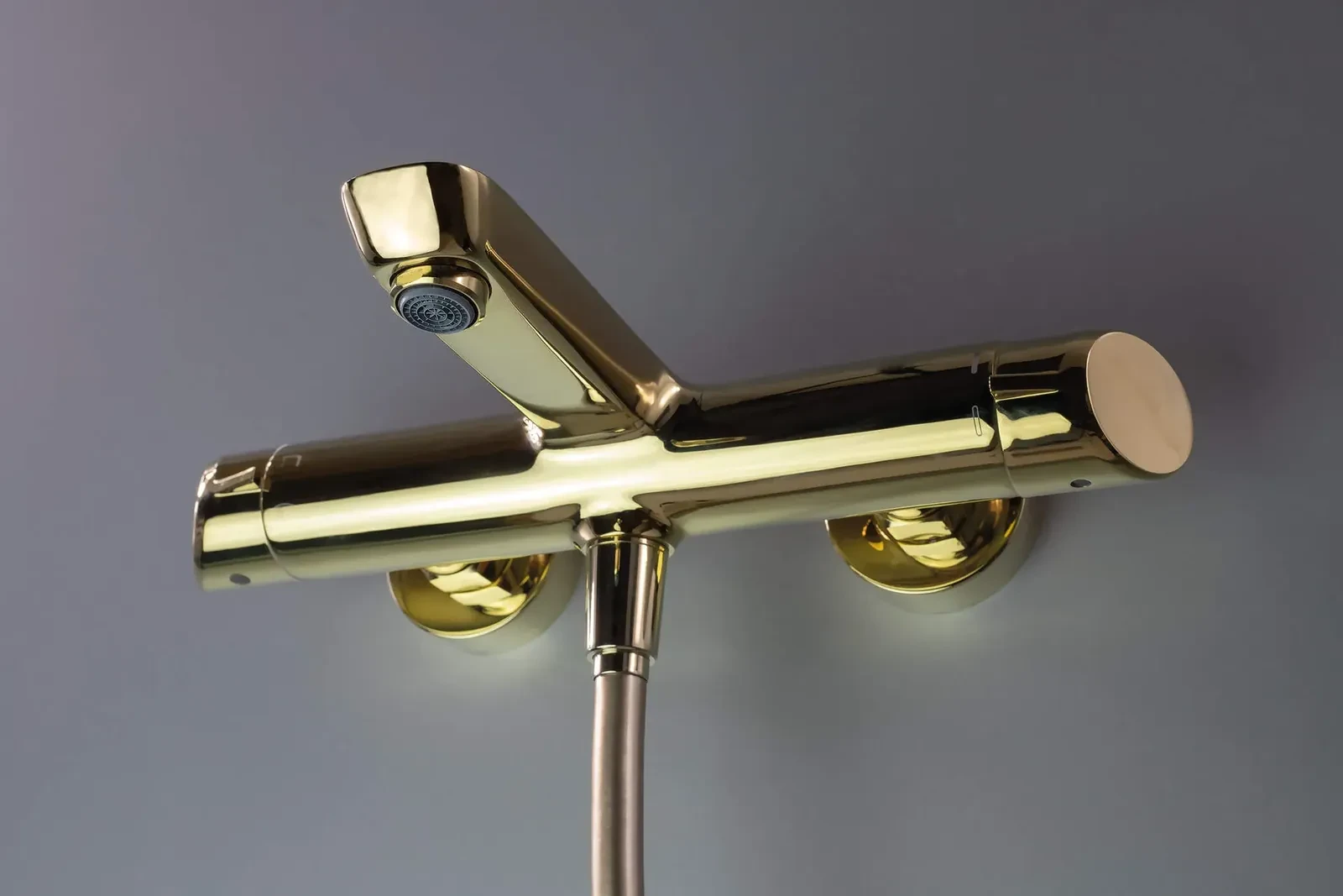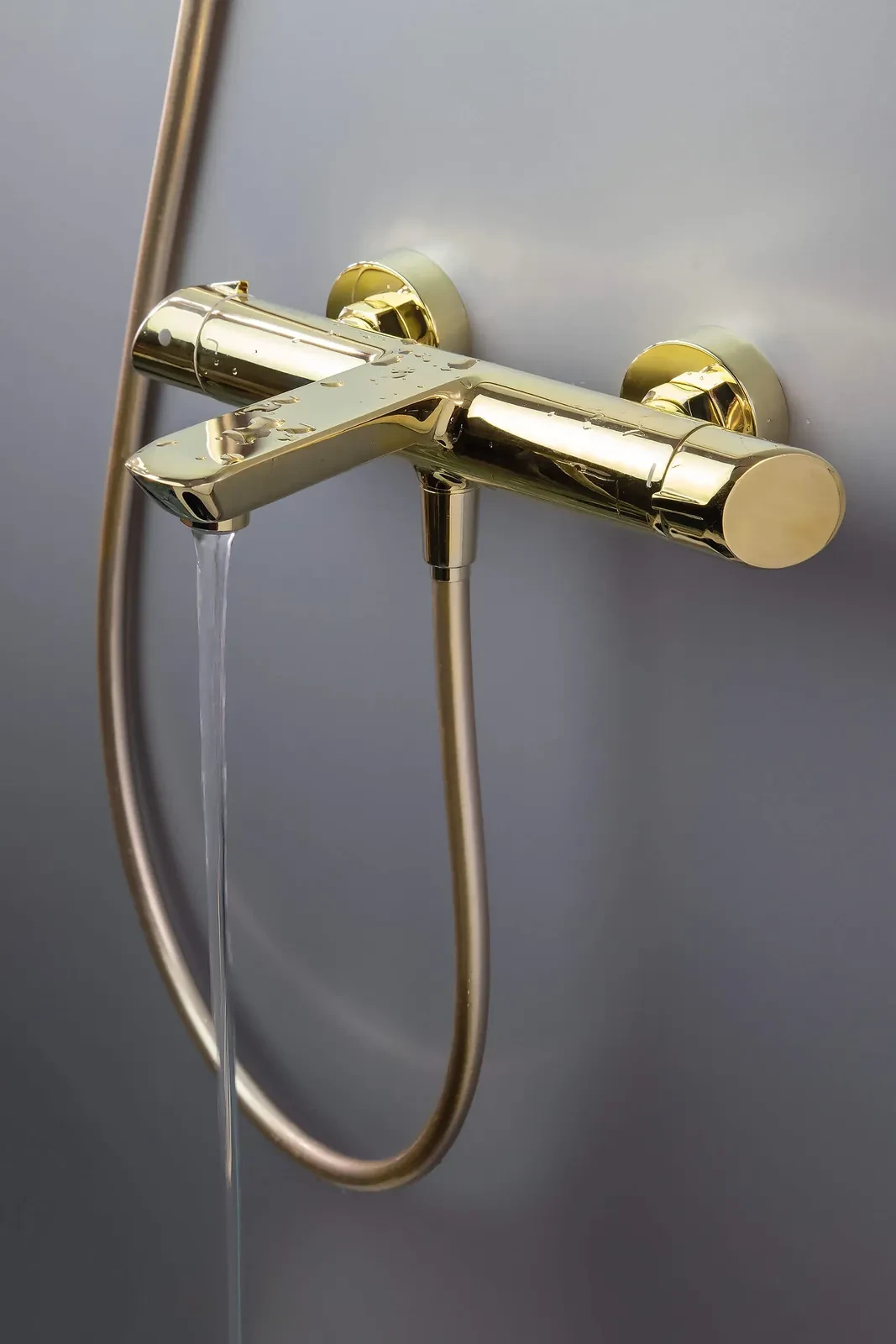 Dwuuchwytowa bateria wannowa zaprojektowana przez Małgorzatę Płoskońską, wyróżnia się harmonijną formą i obłym kształtem. Jej złote wykończenie doskonale komponuje się z białą ceramiką i ociepla aranżacje. Bateria zamiast tradycyjnej dźwigni posiada dwa wygodne pokrętła. Jedno pokrętło służy do przełączania wody między wylewką a słuchawką prysznicową, drugie zaś do regulacji temperatury wody. Bateria posiada ceramiczną głowicę oraz silikonowy aerator, który napowietrza wodę, znacznie ograniczając jej zużycie.