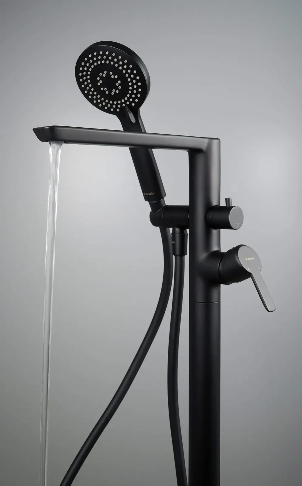 Deante Arnika Bateria wannowa wolnostojąca z zestawem prysznicowym, nero, BQA_N17M