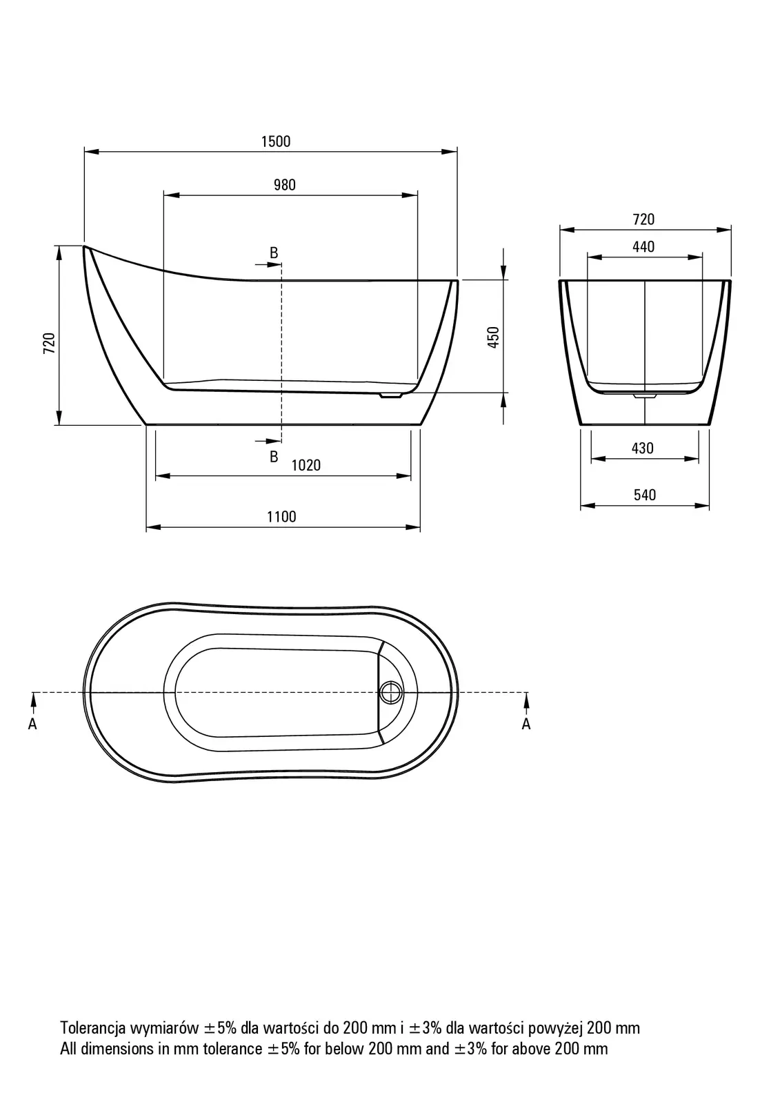 Deante Arnika Wanna akrylowa wolnostojąca asymetryczna – dane techniczne i specyfikacja