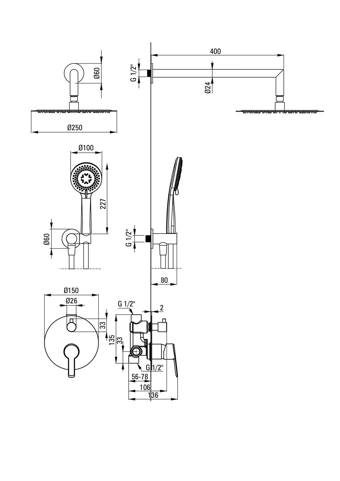 – Sposób instalacji: podtynkowy