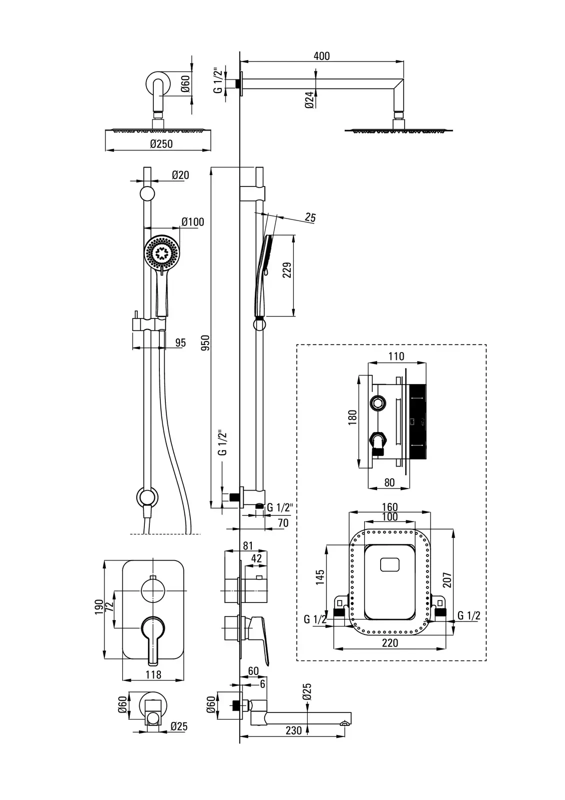 Deante Arnika Zestaw prysznicowy podtynkowy z BOXem mieszaczowym – dane techniczne i specyfikacja