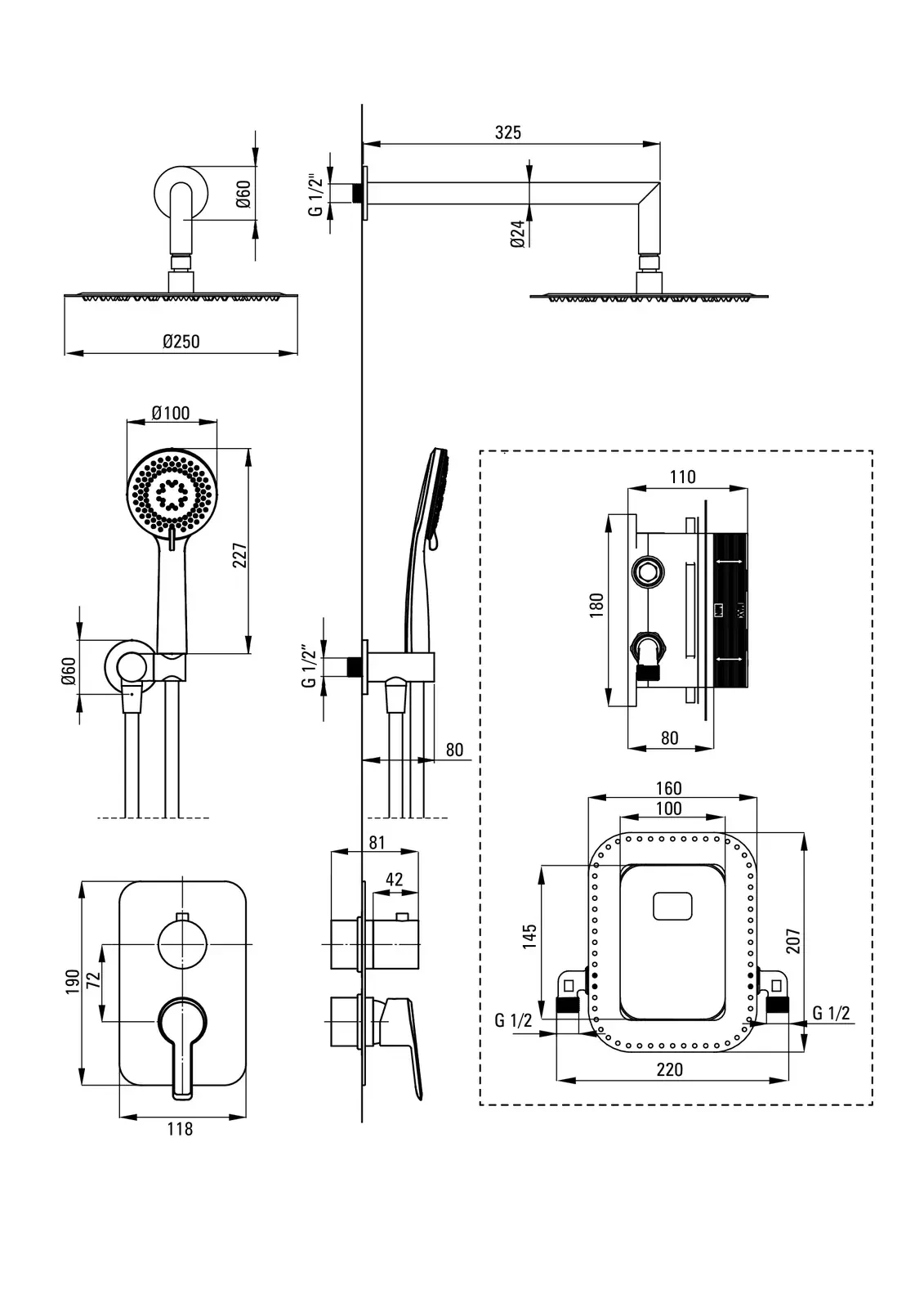 Deante Arnika Zestaw prysznicowy podtynkowy z BOXem mieszaczowym – dane techniczne i specyfikacja