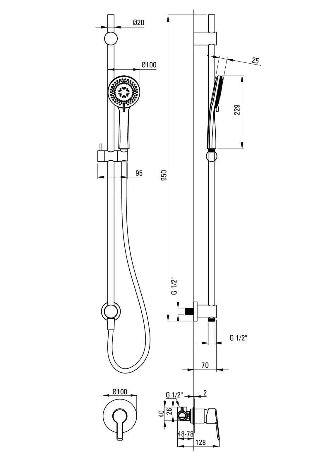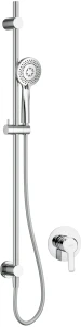 Komplet podtynkowy Arnika składa się ze słuchawki prysznicowej z wężem, umocowanej na eleganckim drążku oraz podtynkowej baterii. Mosiężny uchwyt słuchawki można przesuwać do dowolnej pozycji. Słuchawka prysznicowa posiada 3 funkcje strumienia: strumień deszczowy, hydromasaż i mieszany oraz system anti-calc, ułatwiający czyszczenie jej z osadu i kamienia. Bateria jest jednouchwytowa, z wygodną dźwignią i ceramiczną głowicą. Wszystko wykończone w eleganckim, błyszczącym chromie.