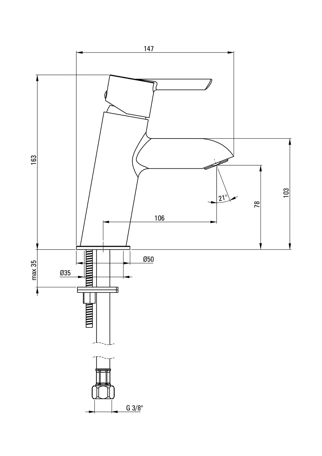 Deante Bateria umywalkowa niskociśnieniowa trójdrożna – dane techniczne i specyfikacja