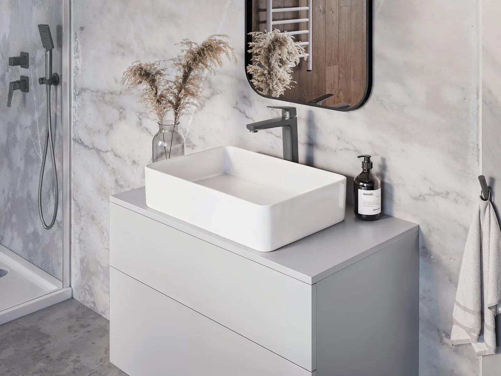Materiały wysokiej jakości gwarantują odporność i trwałość w wymagającym środowisku łazienki lub kuchni.