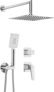 Elegancki zestaw podtynkowy składający się głowicy, słuchawki prysznicowej wraz przyłączem kątowym i wężem oraz baterii. Głowica natryskowa w kwadratowym kształcie zapewnia równomierny, komfortowy strumień wody, gwarantując relaksujące doznania podczas kąpieli. Wykonana z wysokiej jakości materiałów, jest trwała i odporna na korozję. Zestaw wyposażony jest również w baterię podtynkową z ergonomiczną dźwignią, która umożliwia precyzyjną regulację temperatury i natężenia strumienia wody.Całość wykończona w chromie, idealnie komponuje się zarówno z nowoczesnymi, jak i klasycznymi aranżacjami łazienkowymi. Dzięki podtynkowej konstrukcji, elementy instalacji są dyskretnie ukryte, co nadaje łazience minimalistyczny i schludny wygląd.