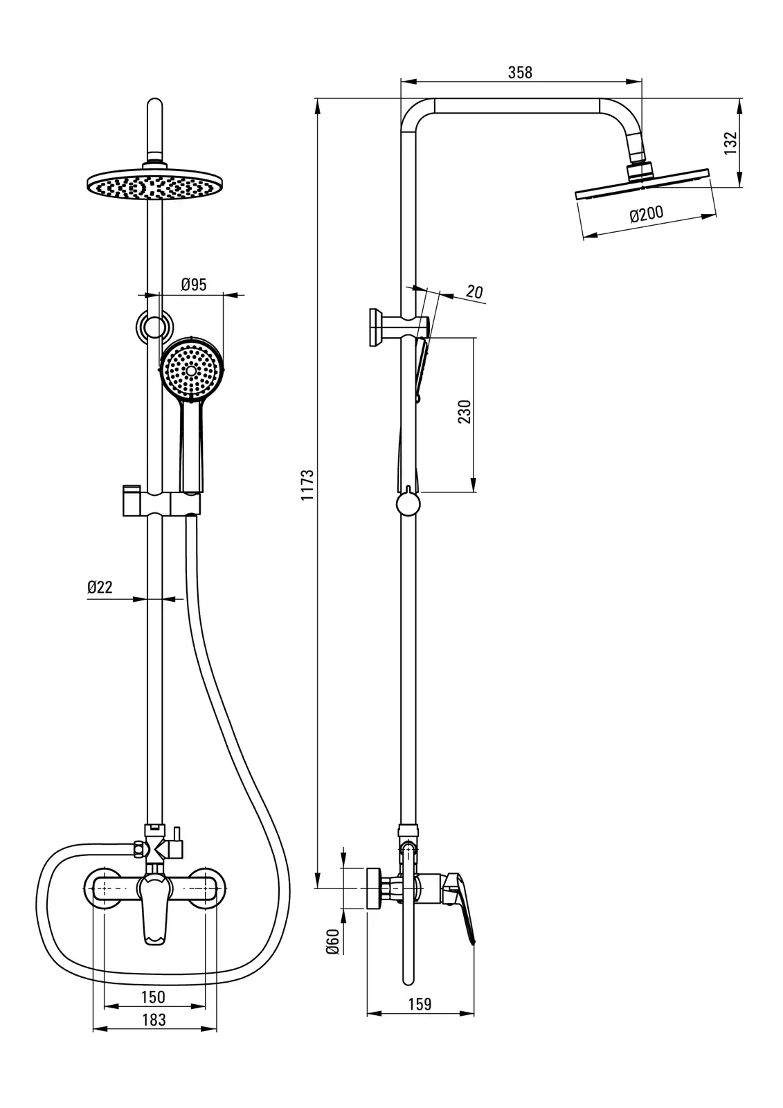 Deszczownia Neo Boro składa się z mosiężnej baterii mieszaczowej, deszczownicy i drążka ze stali nierdzewnej oraz słuchawki wraz z wężem. Głowica i słuchawka wyposażone są w system anti-calc ułatwiający usuwanie osadu kamiennego. Słuchawka posiada 3 strumienie: deszczowy, hydromasaż i mieszany. Cały zestaw wykończony jest w eleganckim czarnym macie.