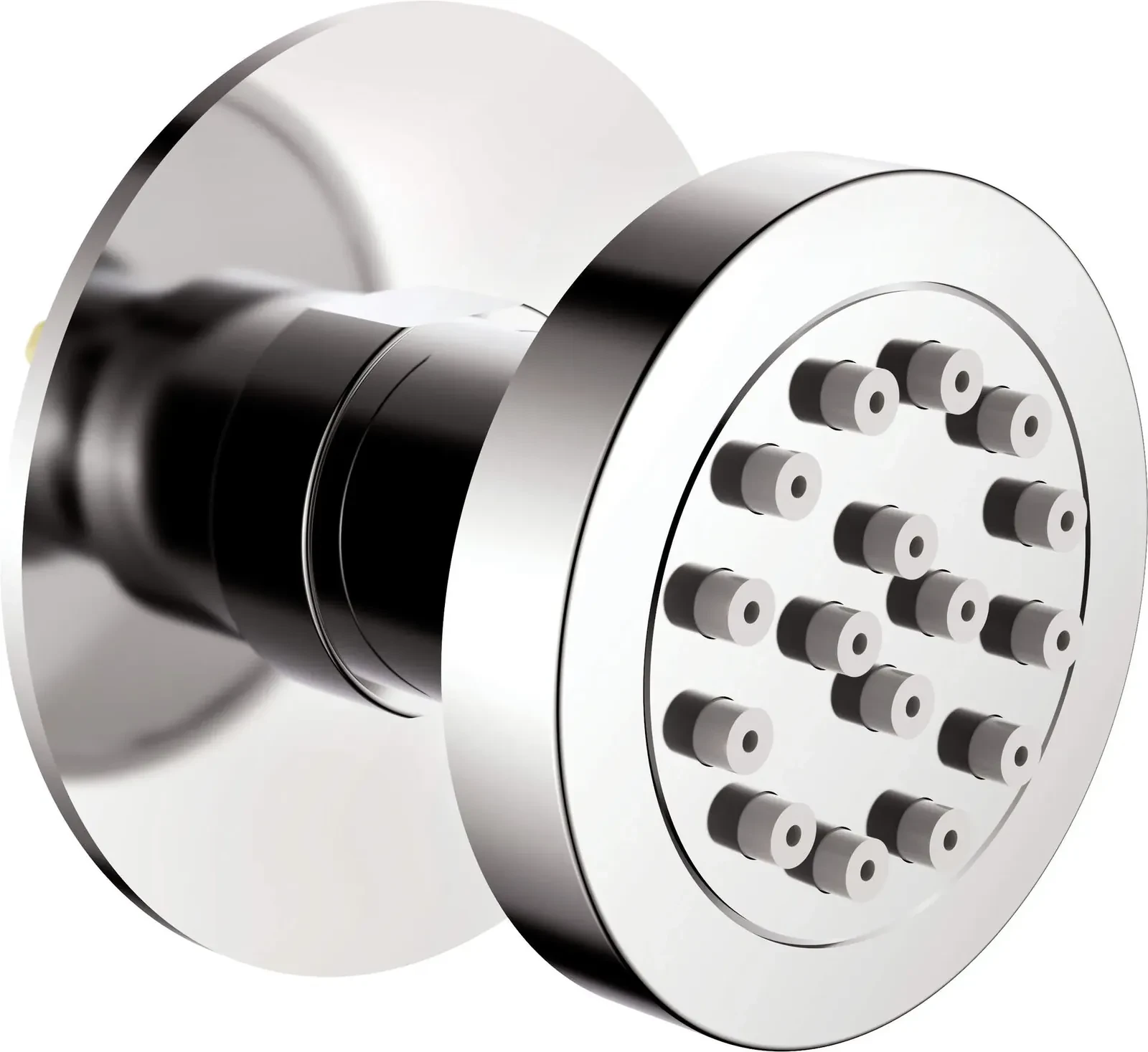 Okrągłe dysze Cascada umieszczane są na przegubach, dzięki czemu użytkownicy mogą dostosować je do swojego wzrostu. Wykonane są z trwałego i odpornego mosiądzu oraz wyposażone w system Anti-calc, który przeciwdziała osadzaniu się kamienia.