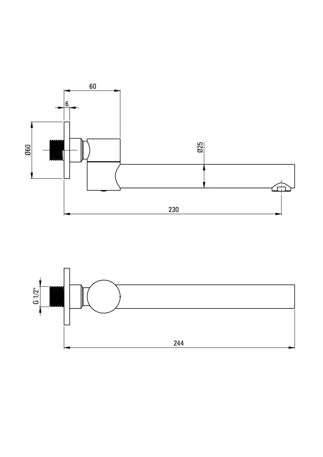 – Długość wylewki: 230