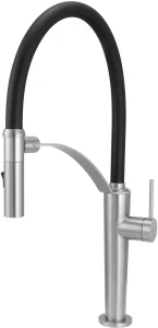 Bateria kuchenna Corda to praktyczny i elegancki wybór. Elastyczna wylewka pozwala na łatwe mycie naczyń i utrzymanie czystości wokół zlewozmywaka. Dzięki magnetycznemu uchwytowi, wylewka jest zawsze na swoim miejscu. Dwufunkcyjna słuchawka umożliwia zmianę strumienia z napowietrzonego na deszczowy, co zwiększa komfort użytkowania i funkcjonalność baterii. Wykończenie w kolorze szczotkowanej stali jest odporne odciski palców i łatwe do utrzymania w czystości, co sprawia, że bateria wygląda nowocześnie i estetycznie. Jej design doskonale komponuje się z serią granitowych zlewozmywaków Corda.