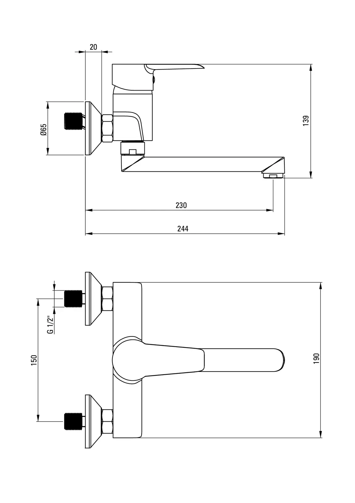 – Długość wylewki: 230