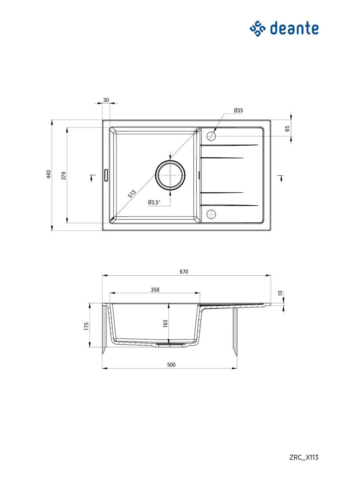 Deante Corio Zlewozmywak granitowy 1-komorowy z ociekaczem – ZRC_2113